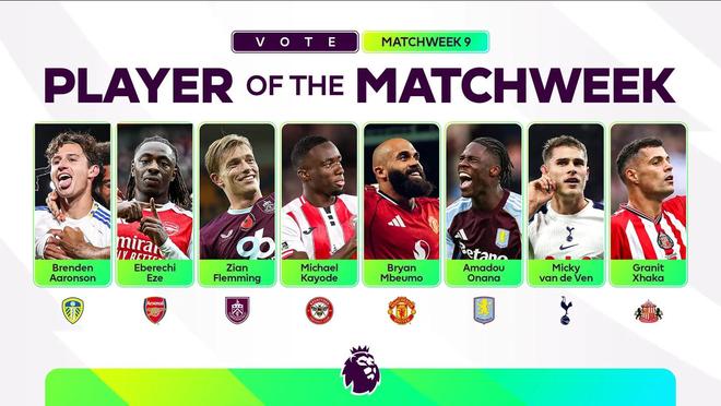 北京时间10月28日,英超官方公布了第9轮比赛日的最佳球员候选,其中埃泽、姆伯莫、范德芬、扎卡在列。